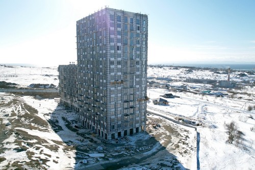 Представьте себе яркие северные ягоды на фоне зеленых долин и низкого неба. А теперь посмотрите на фасады проекта «Сердце Сахалина» — вы знаете, что стало для них вдохновением.
